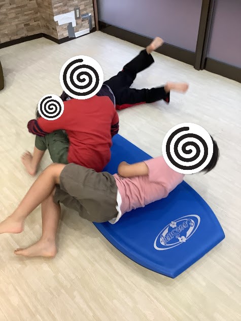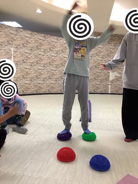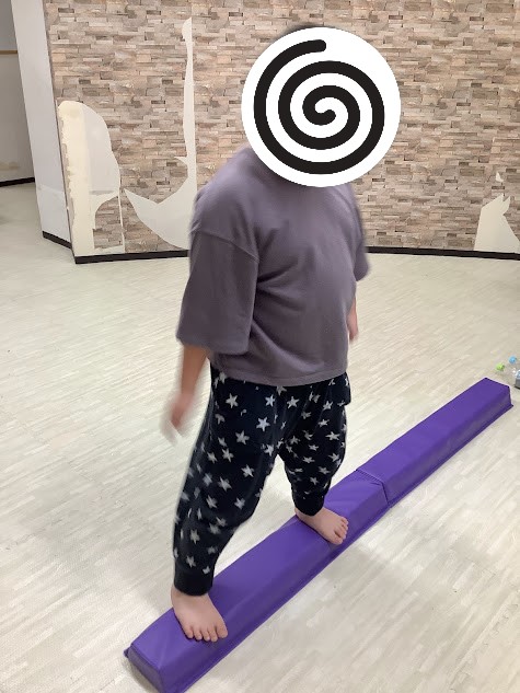 次は一本橋とミニバランスボールの上を歩きます💦