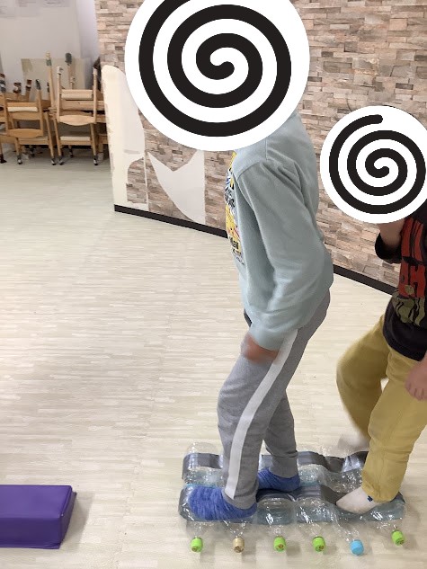 まずはペットボトルの上を歩きます🌟