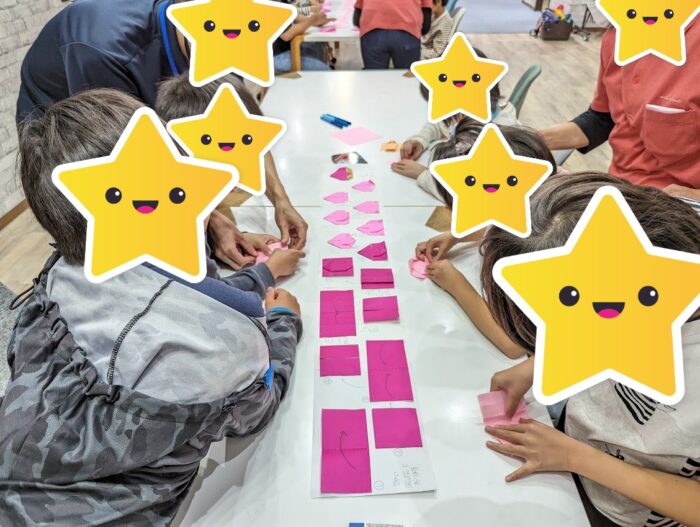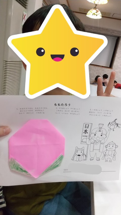 折り紙では作図をもとに桃を作り上げます🌟