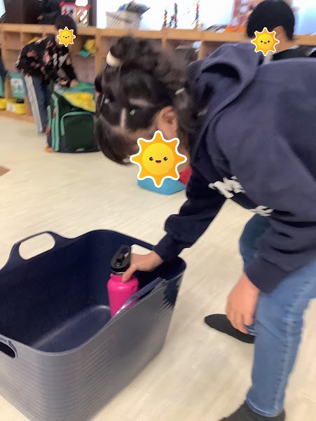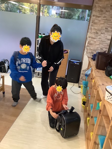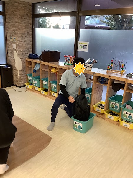 靴を脱ぐ→荷物整理→水筒を出してカゴに入れる→手洗い…の流れで行いました。