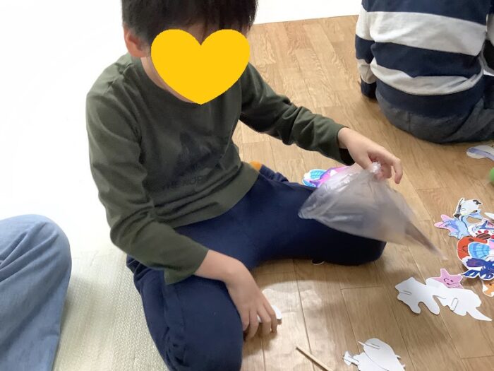 最後に釣ったさかなを自分に名前の書いてある袋に入れます!