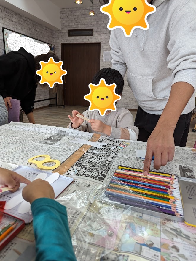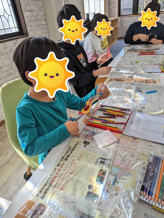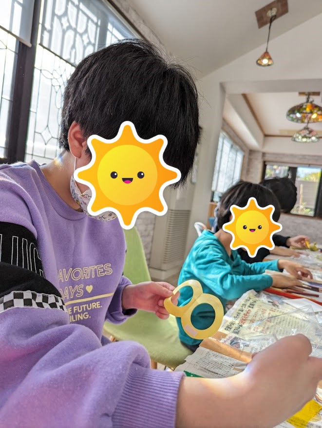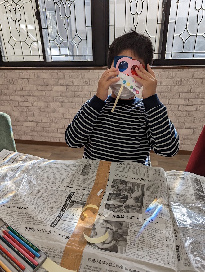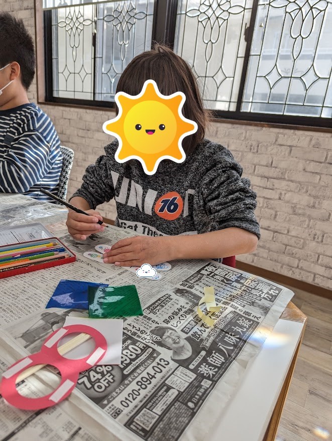 本日はみんなで「トンボのめがね」の工作を行いました✂