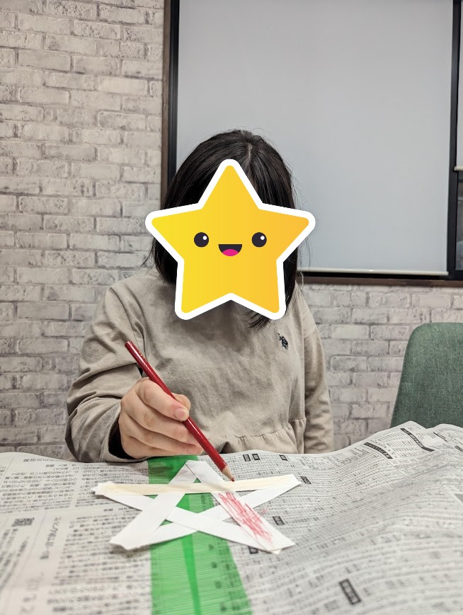 まずは、星の形に合わせて画用紙を重ねていきます。