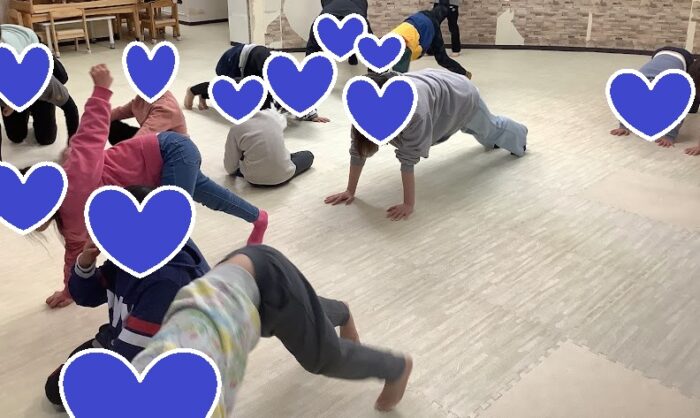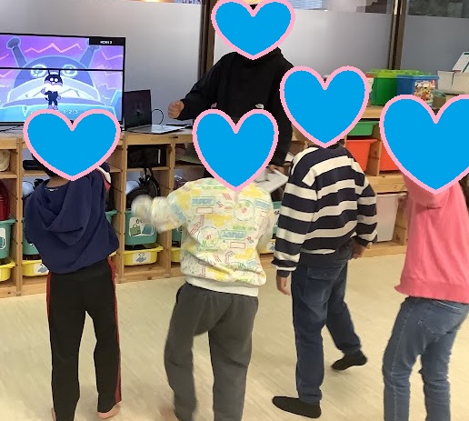 最初に、アンパンマンの「サンサンたいそう」で体をほぐします。