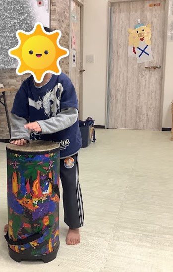 まず、クリスマスソングを流してみんなでタンバリンや太鼓を叩いたり、鈴を鳴らしたりして演奏しました(*’▽’)