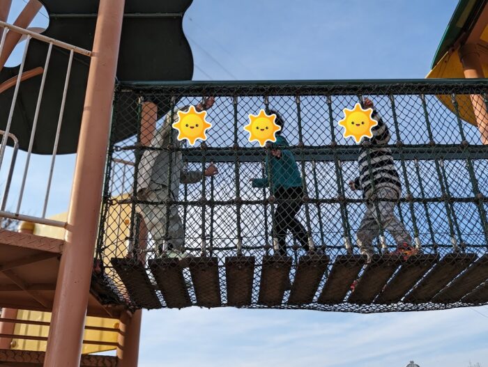 滑り台や吊り橋など面白そうなアスレチックがいっぱい😘