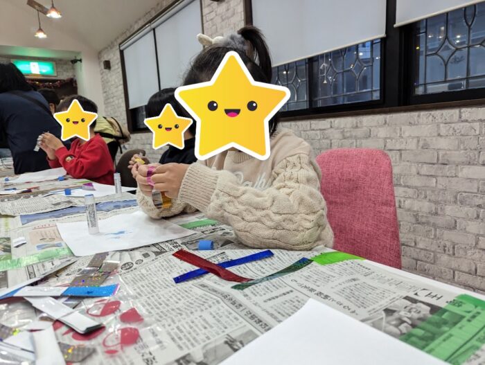 のりを上手に使って黙々と制作に取り組みます👀✋