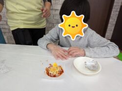 お昼ごはんを食べた後はみんな大好き「手作りおやつ」の時間です!