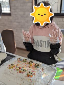 最後の仕上げはトッピング担当のお友達にお任せして完成です😍