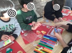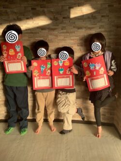 思い思いにシールや色ペンで飾りつけをしていきます🎵