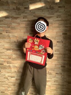 できたカレンダーとみんなで記念撮影!