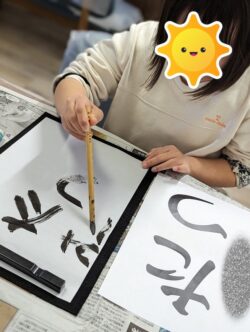 本日の課題は「書初め」ということで、今年の干支の【たつ】の文字を書きました!