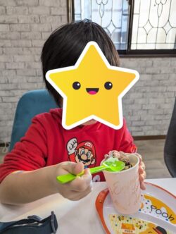 まずはおやつにみんなでバームクーヘンパフェを食べました🍨