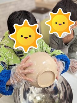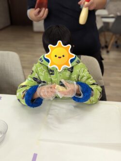 早速パン生地を捏ねたり、のばしたりして感覚遊びをします👐