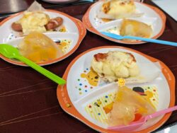 まずは午前中に代表のお友達がスタッフのお手伝いで「フルーツゼリー🍑」作りに挑戦!