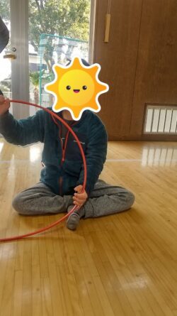 フラフープを使って遊んだり、