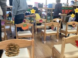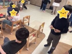 最初に配られたチケットと同じ絵が貼ってある椅子を探して座ります!!