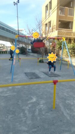 公園に付いたら真っ先にブランコの方に