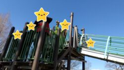 まずはみんなでアスレチックに登り…