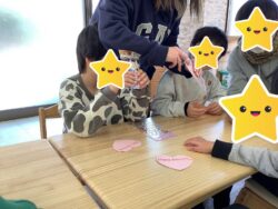 ハートの紙が配られてデコレーション開始です💓