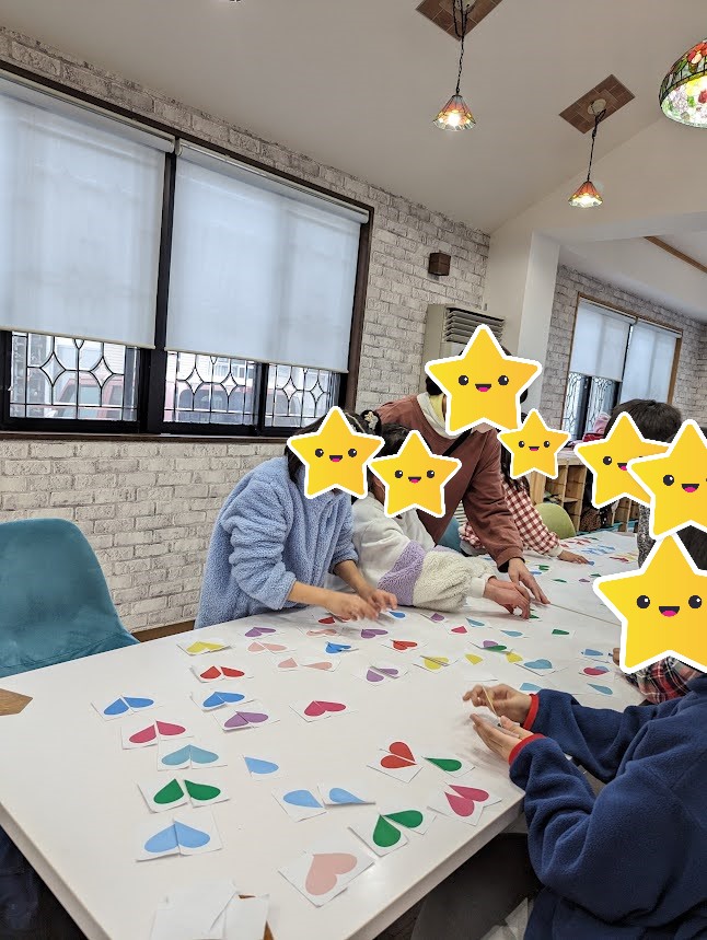 まずはグループに分かれ、順番を決めた後に一人ずつカードをめくってハートを揃えていきます👌