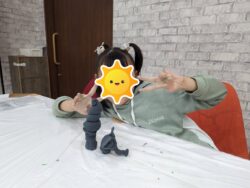 と大事に少量ずつ色々な色の粘土を混ぜて色遊びをするお友達も発見!