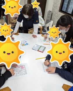 今日は、みんな夢中になりながらも塗り絵を