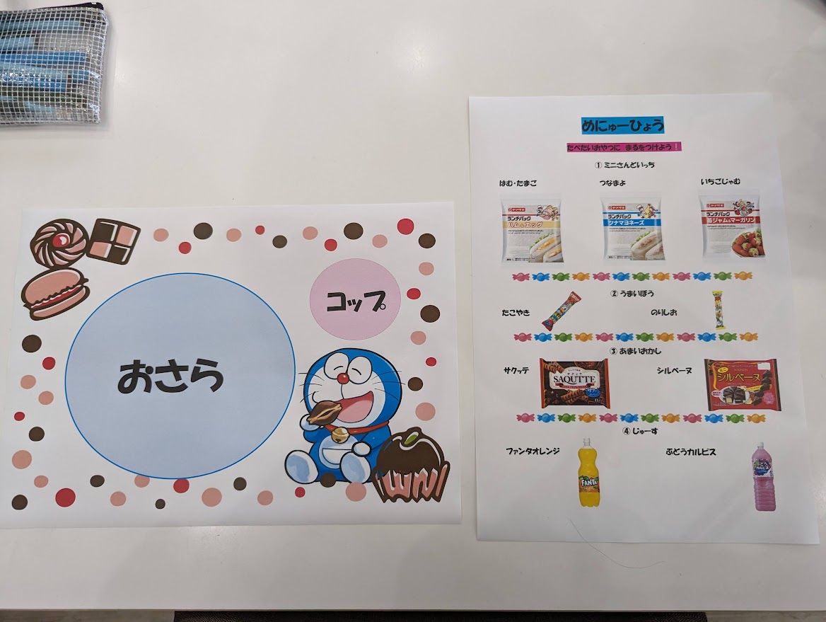 ひとりずつ自分が食べたいものを選んでメニュー票にチェックをつけてもらいます。