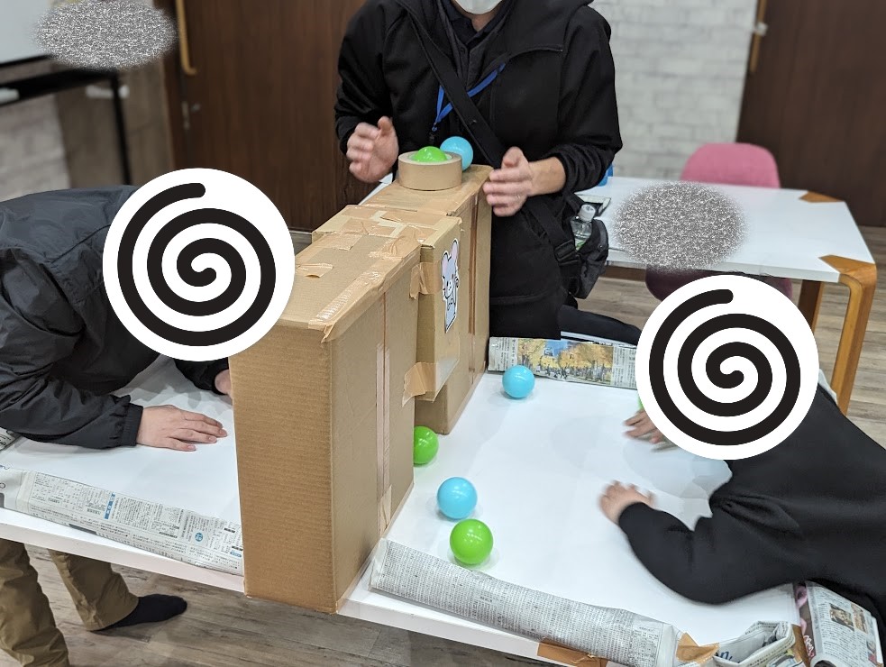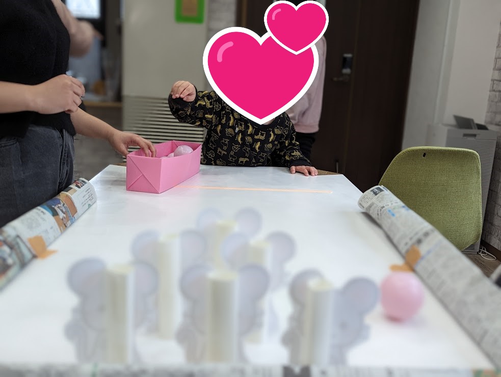 紙芝居の後は、「転がるおむすびネズミの小さな世界」をイメージしたミニゲームを行いました😊✌