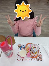 今日は美味しいお菓子とジュースをマナー良く食べる練習をしましょう!