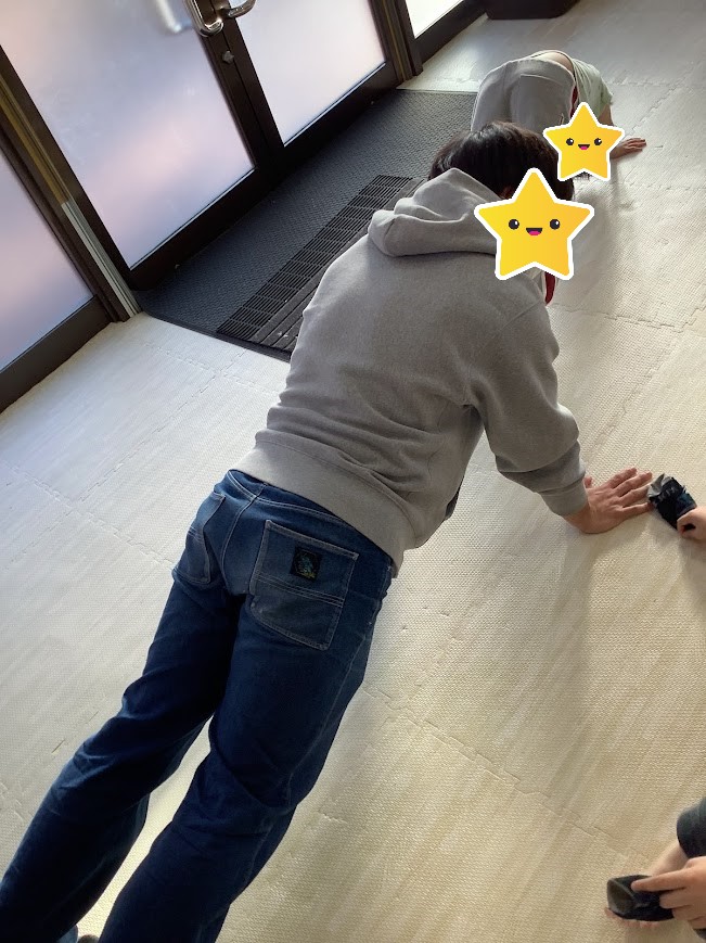 本日は筋トレの日ということで、みんなで動画を観ながら