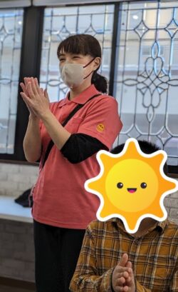 スタッフを真似して一人ずつリズムを叩きます🥁