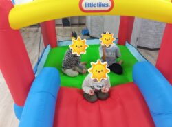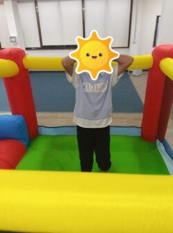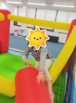 その後は雨のため、室内でみんな大好きなバウンサーで遊びました。