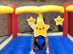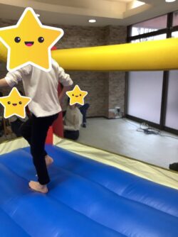 バウンサーのネットに顔をくっつけて変顔!みんな大笑いでした( ´艸`)
