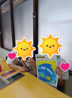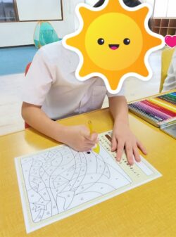 指定された数字に指定された色を塗り、どんな絵が浮き上がってくるのかワクワクするぬりえを行いました。