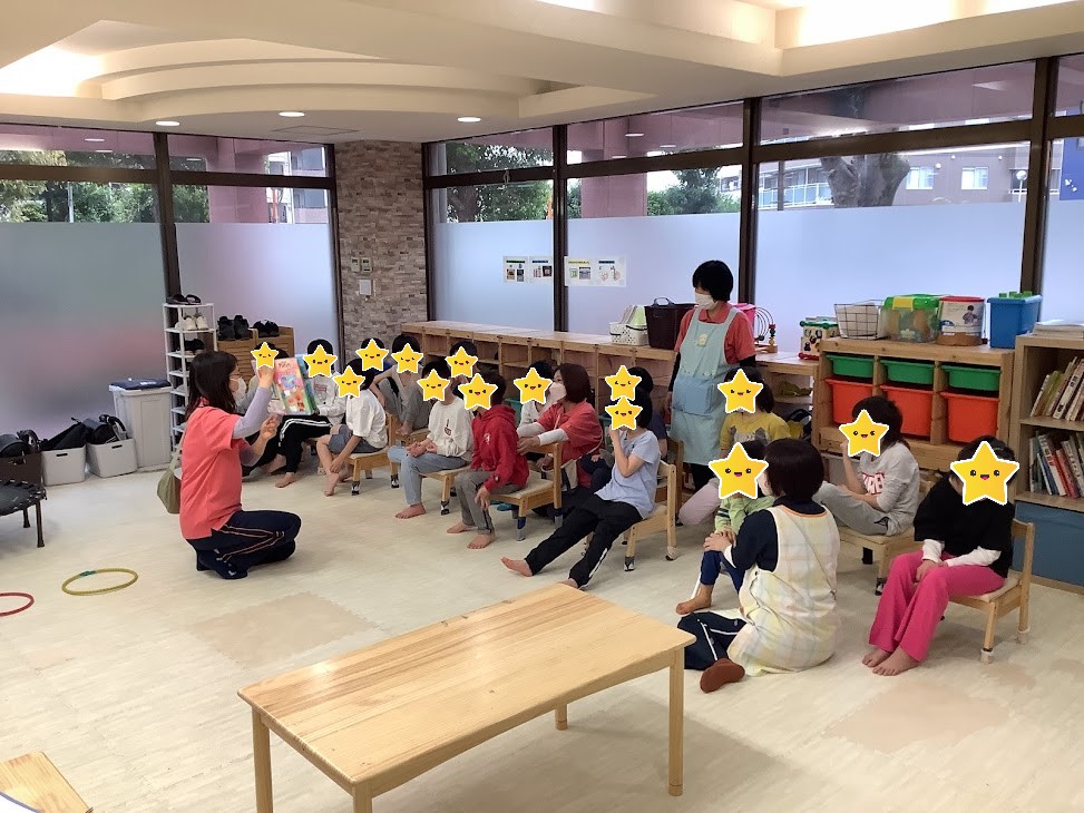まず、準備している間スタッフが絵本の読み聞かせを行い、