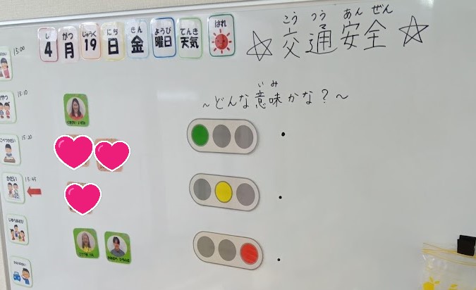 「赤・黄・青」の信号の意味を発言してくれるお友達も💕