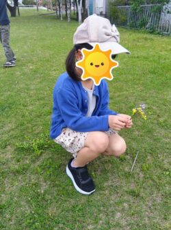 お散歩しているとお花を見つけて「お母さんに持って帰るんだ🌸」と、花摘みをしました。