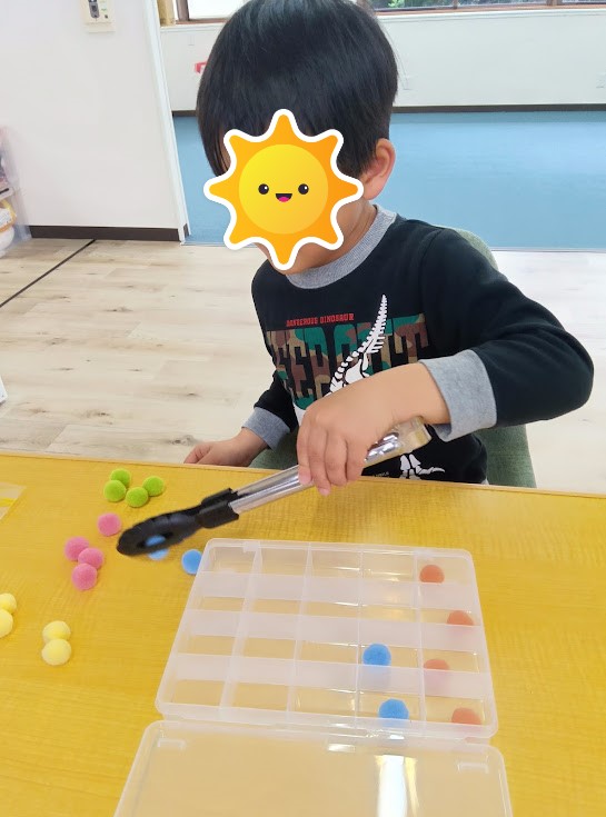 公園から帰ってきた後は、個別課題の微細運動を集中して取り組みました。