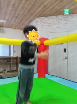 午後からは天気も雨だったので、バウンサーで思い切り体を動かしました。