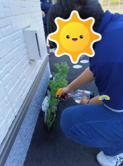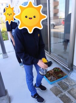 体調管理も大変ですが、皆で敷地内の外へ出て、先日購入した苗の水やりをしました。