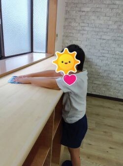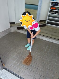 窓や掃き掃除を一生懸命頑張ってくれています。
