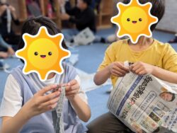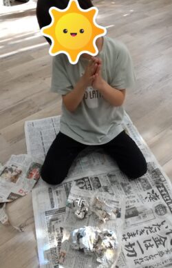 本日の課題は「感覚遊び」ということで新聞紙を使って活動しました🗞️
