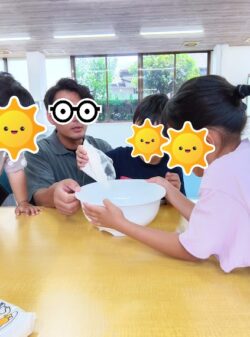 みんなで役割分担をして生地を作りました。