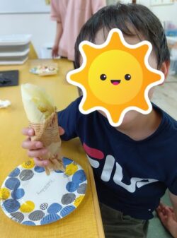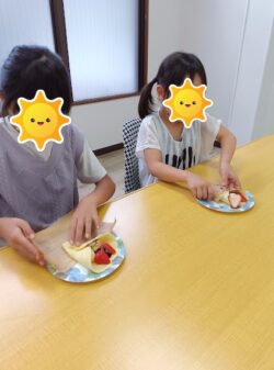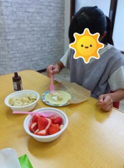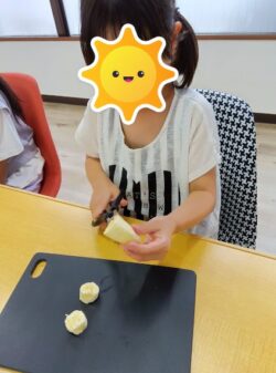 クレープにトッピングするバナナをみんな上手にカットしていました!