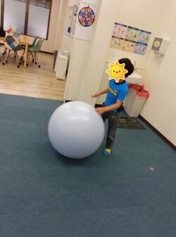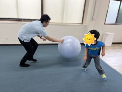 本日は、あいにくの天気だったので、室内でボール遊びを行いました。