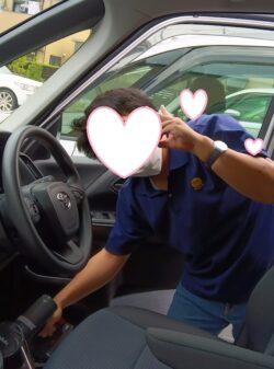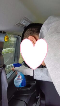 「掃除機掛け・窓ふき・車内の水拭き」の役割分担をして、一生懸命作業に取り組みます👍
