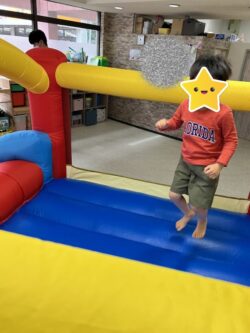 たくさん食べた後の午後は、バウンサーで身体を動かします。