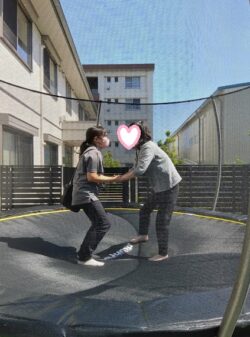 午後はお庭の大きなトランポリンで大ジャンプ!!!