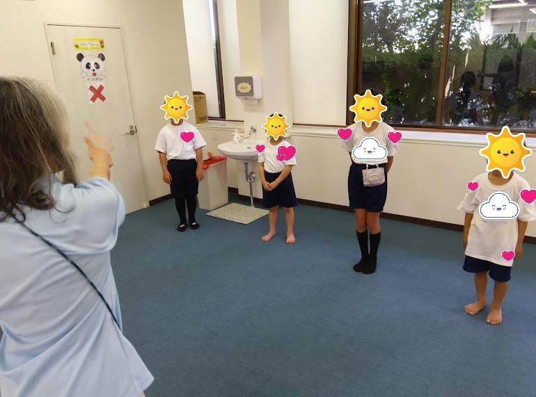 次にスタッフさんの動きを見て、同じ動きをしてもらいました。